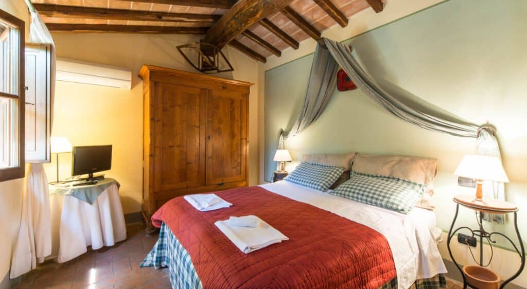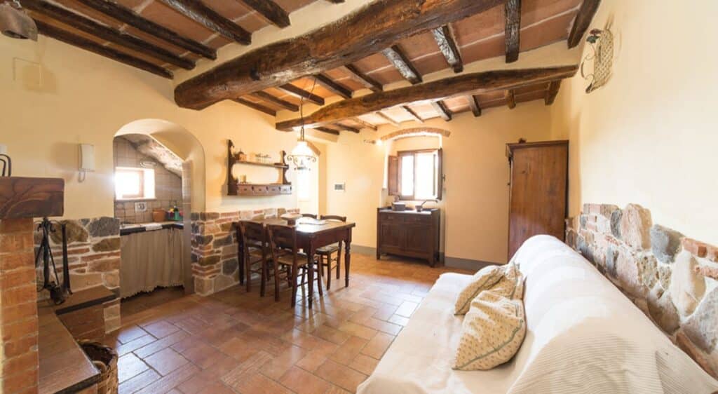 Lejlighederne på Agriturismo Podere il Poggiolo er indrettet i klassisk toskansk stil med varme farver, terrakottagulve og rustikke detaljer. Indretningen er enkel, funktionel og hyggelig – og passer perfekt til stedets afslappede atmosfære.