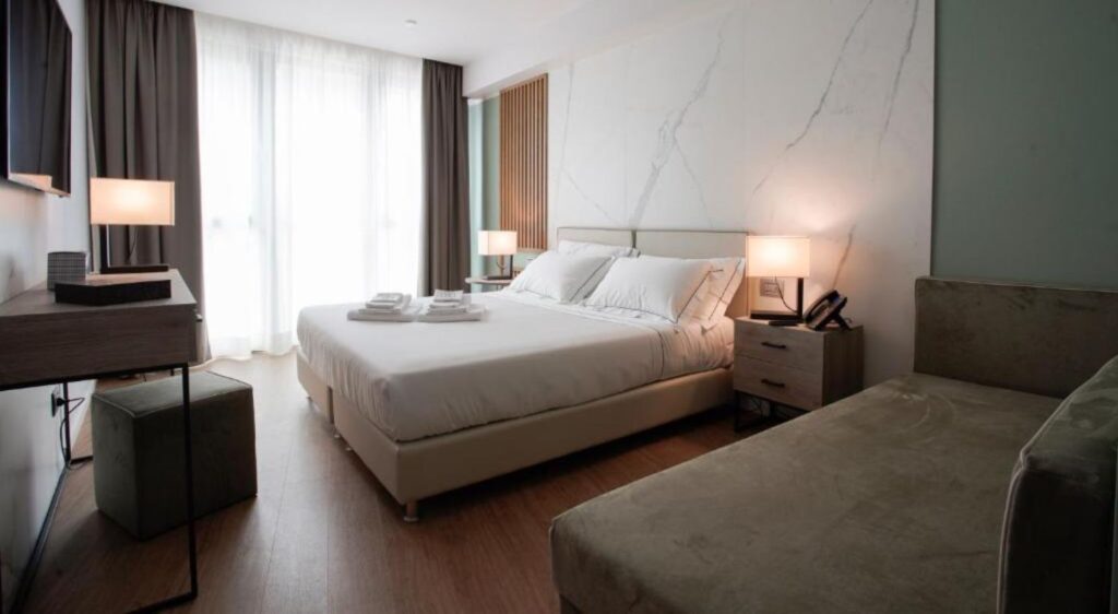 Værelserne er udstyret med aircondition, Wi-Fi, satellit-TV, minibar, hårtørrer og eget badeværelse med bruser. Derudover er der kaffe- og tefaciliteter samt de nødvendige bekvemmeligheder, så du har det, du skal bruge under opholdet