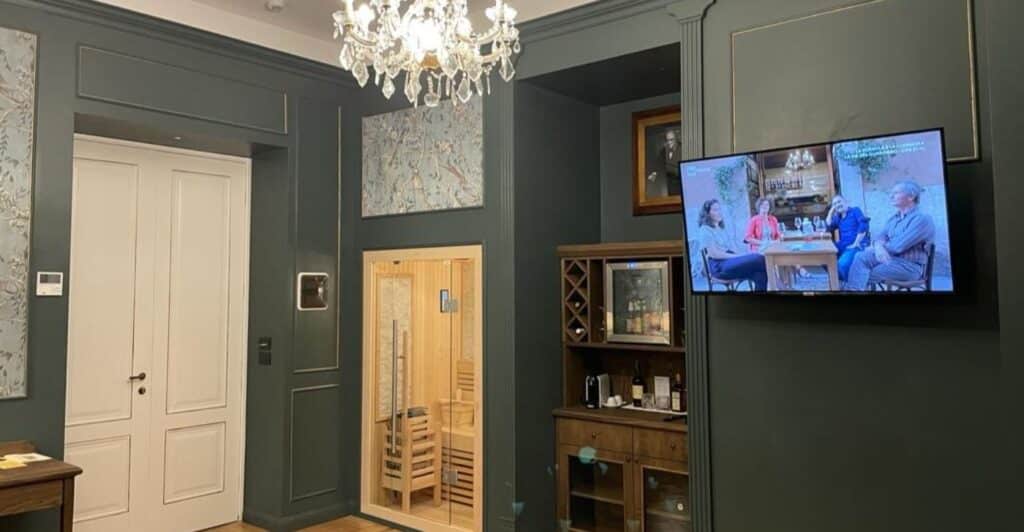 Sanremo er kendt som “Blomsterrivieraens” elegante by med Belle Époque-arkitektur, palmer langs strandpromenaden og en stemning, der blander afslappet ferie med kultur og historie. Hotel Des Anglais passer perfekt ind i det billede. Bygningen emmer af klassisk charme med lyse rum, gamle stuklofter og krystallysekroner, der leder tankerne tilbage til en svunden tid – men komforten er helt nutidig.