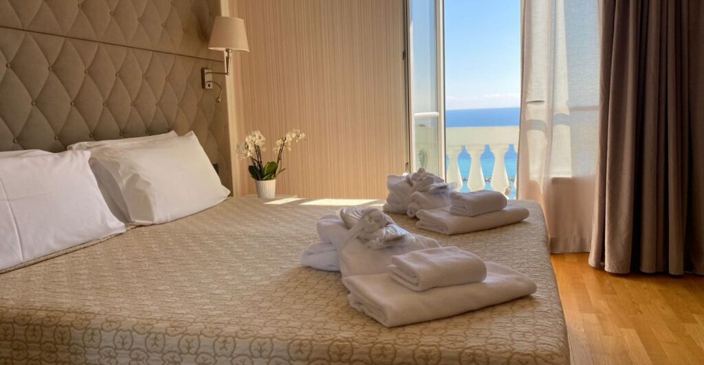 Værelserne er udstyret med bruser, direkte telefon, minibar, satellit-tv, værdiboks, hårtørrer, aircondition og wi-fi. Komforten er i orden, og stilen matcher hotellets Belle Époque-udtryk. Her får du en base, der føles som en del af Sanremos historie – uden at give afkald på moderne bekvemmeligheder.
