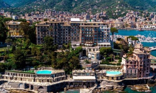 Hotel Excelsior Palace Portofino Coast er et af de steder, hvor du mærker historiens vingesus fra det øjeblik, du ankommer. Hotellet ligger smukt placeret direkte ved havet i Tigullio-bugten med udsigt mod Portofino mod vest og havnen i Rapallo mod øst. Det er det eneste femstjernede luksushotel på Portofino-kysten og et sted, der i generationer har tiltrukket den internationale “Beau Monde”.